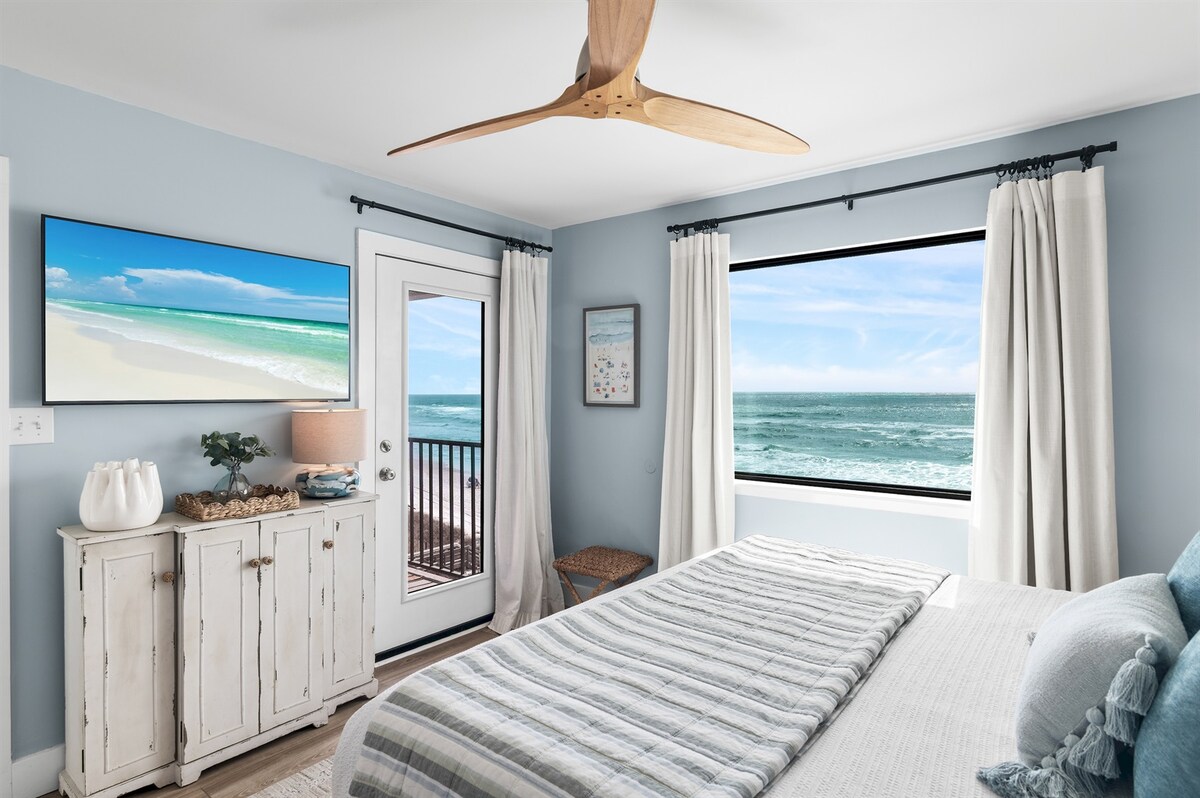 Serenity at Seamist 9 tiene acceso privado a la playa y es una de las 12 unidades de propiedad privada en una zona tranquila en 30-A. Experimenta unas tranquilas vacaciones en la playa en este exquisito condominio frente al golfo. Serás recibido por impresionantes vistas que coinciden con los hermosos detalles turquesas en el alojamiento. Dirígete a tu balcón privado para ver más de cerca las brillantes aguas azul-verdes del Golfo. Toma tu bebida favorita y siéntate en las sillas giratorias de la parte superior alta. El lugar perfecto para contemplar a los delfines