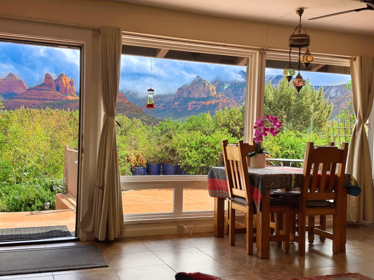 Ubicada entre el Bosque Nacional y las amplias vistas de Red Rock, nuestra habitación Casita separada de la casa principal es el lugar perfecto para escapar y relajarse, contemplar las estrellas y disfrutar de la naturaleza justo fuera de tu puerta. Acogedor ambiente de cabaña, vista a Bell Rock, ropa de cama de primera calidad, baño privado, ducha y aire acondicionado. La habitación incluye: TV inteligente, wifi, artículos de aseo, barra de desayuno, microondas, mininevera, juegos de mesa, almacenamiento de bicicletas, acceso a la cocina del garaje adicional, guías de senderismo, mapas, pase de recreación y ¡MUCHO MÁS!