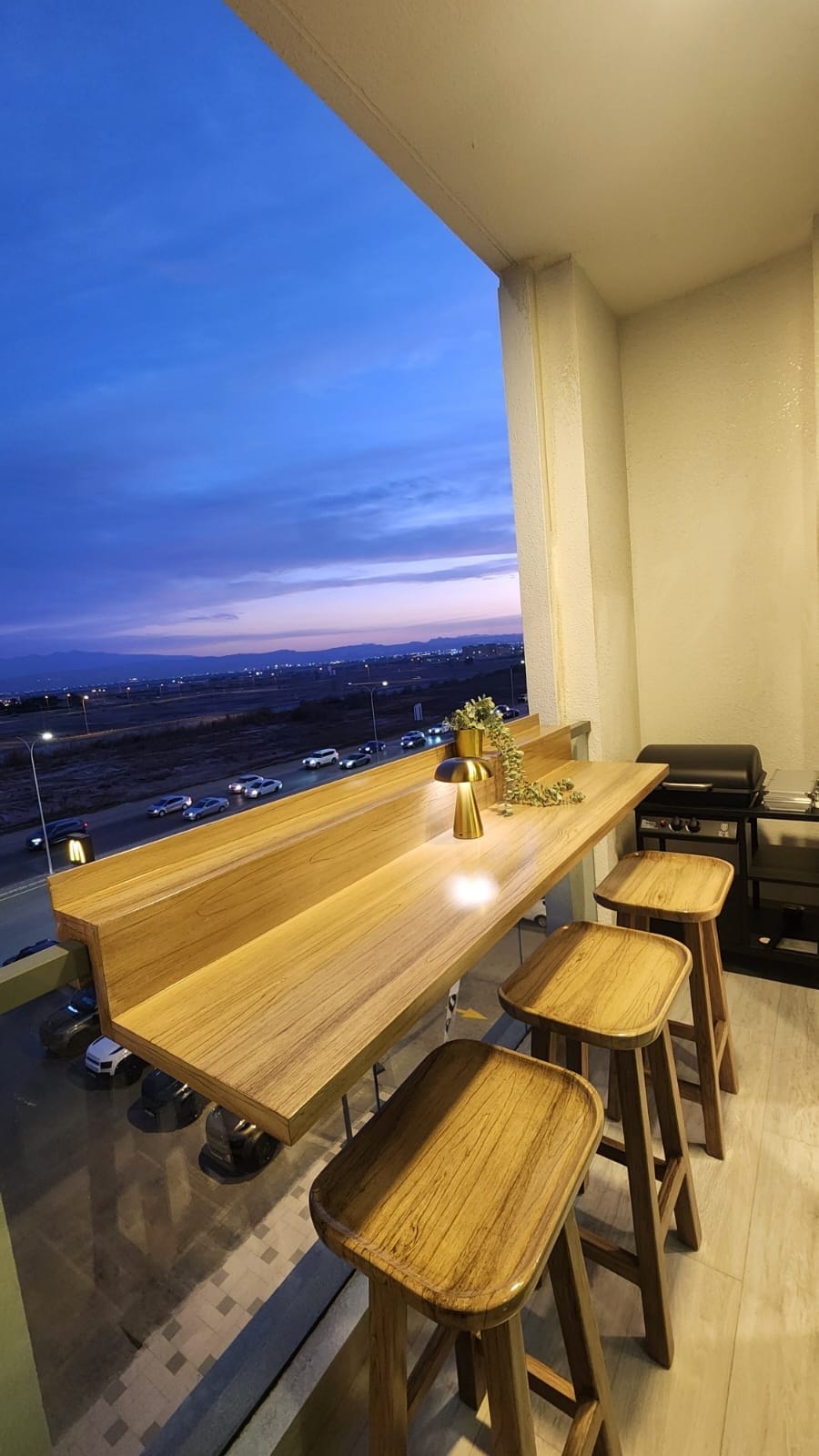 Nuevo apartamento de 1 dormitorio con balcón, sala de estar y 2 baños. Bonitos muebles. Equipado con wifi de alta velocidad, cama y vestidor, sofá, TV inteligente de 50 pulgadas, satélite y acceso gratuito a Netflix, plancha, secador de pelo, aspiradora, aire acondicionado por conductos, techo con focos LED. Puedes disfrutar de la piscina gratuita, el gimnasio, el parque infantil y la zona de barbacoa. A 5 minutos en coche de los centros comerciales, a 15-20 minutos del aeropuerto, a 20 minutos en coche de la playa, a 20 minutos en coche del antiguo mercado, junto a las vistas de las dunas de arena.