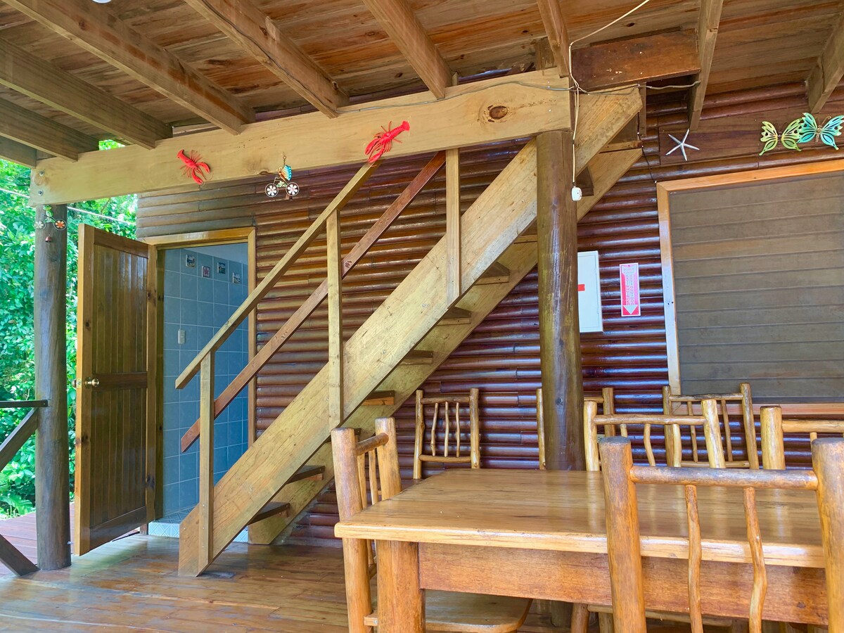 Our newest, most spacious private bungalow.Has a bedroom upstairs, sitting room and private bath downstairs. With sofa beds can sleep up to 4.Garden view and private terrace with hammocks. Start your morning with a view of the garden where birds call for you to join them. Jungle breezes waft mysterious fragrances that invite you to expllore,The Bungalow has mosquito nets, hammocks, private veranda, reading light, and handcrafted furniture. Visit our websight at hotelitoperdido.com .