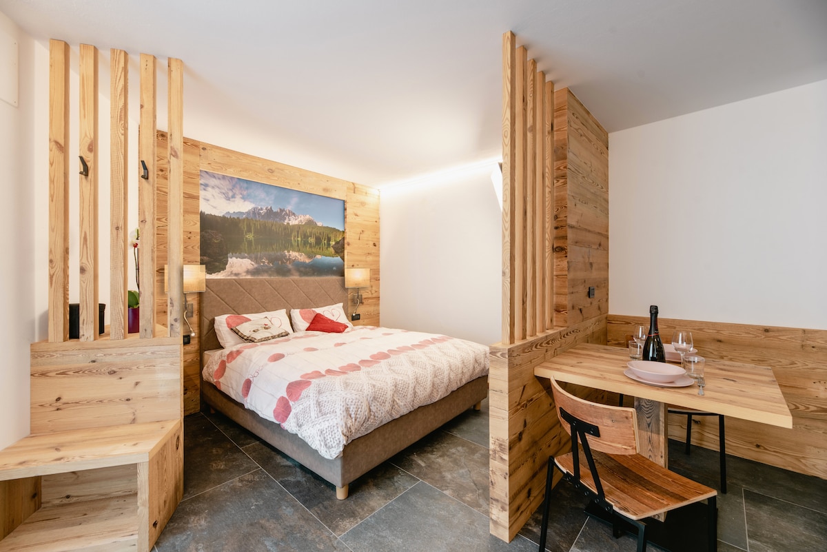 Estudio con spa y piscina de 20 m con vistas a los Dolomitas