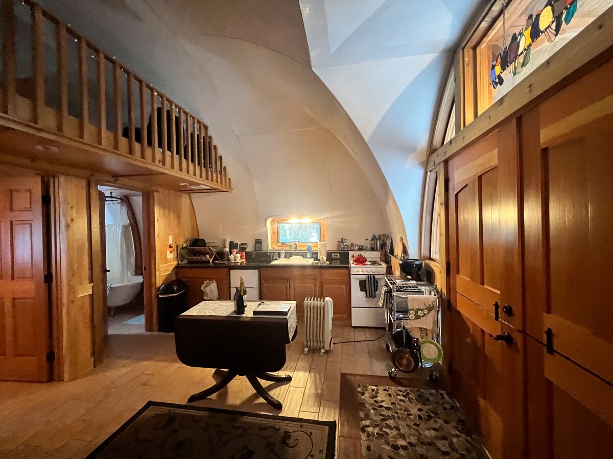Casa subterránea de 500 pies cuadrados construida a medida que puede alojar cómodamente a dos personas. Loft con espacio adicional para dormir y almacenamiento junto con dos colchones plegables individuales y sacos de dormir. Suelo radiante en el baño. A poca distancia a pie del parque estatal de Sequim Bay y del sendero Olympic Discovery. Fogata. Acceso wifi gratuito limitado. Ducha exterior. Edificio Four Season (fogones interiores y literas) Se permite el cannabis (420).
