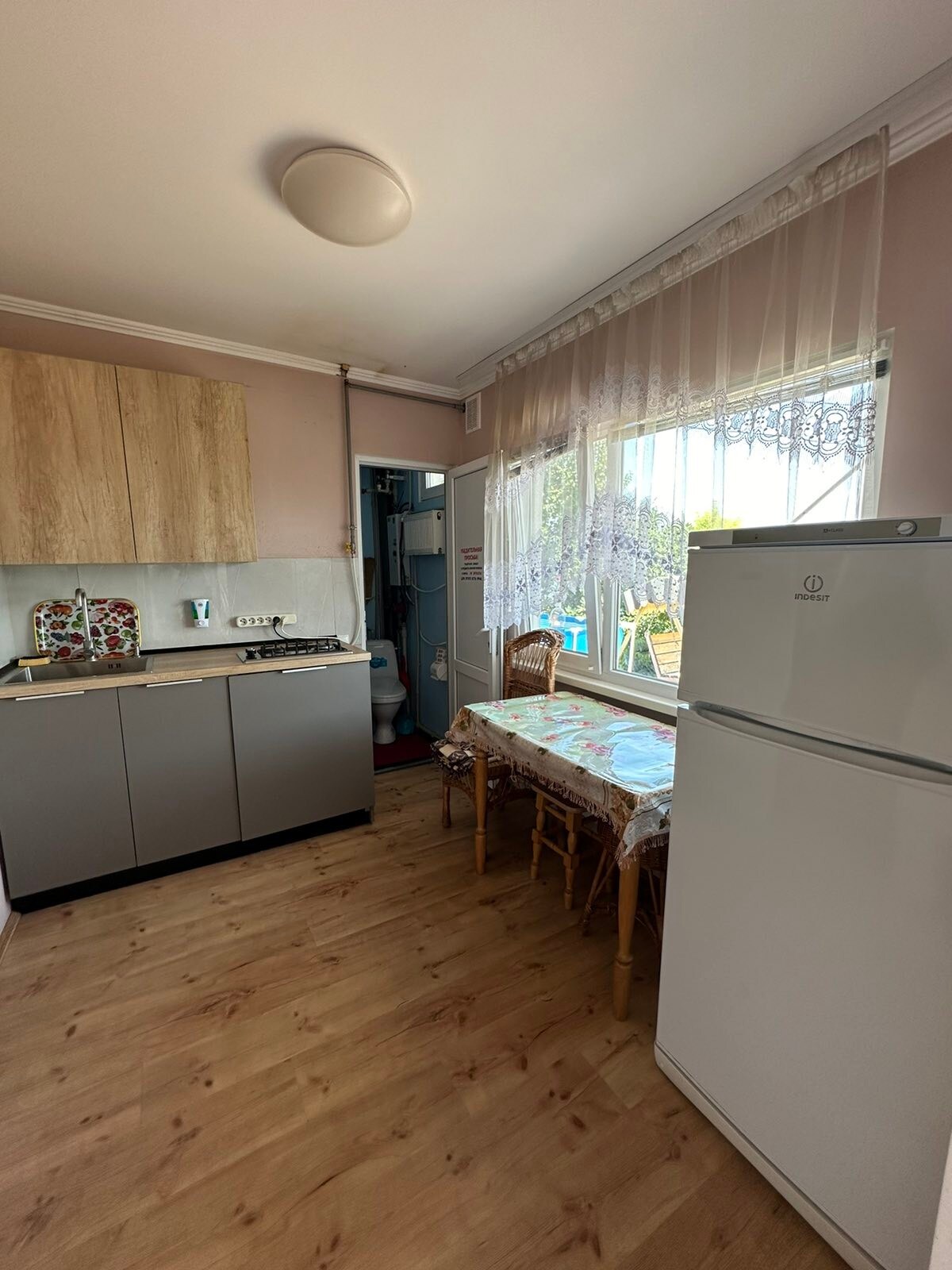 Una casa acogedora para unas vacaciones familiares, a 300 metros del mar. La casa tiene todo lo necesario: aire acondicionado, cocina, baño, amplia sala de estar. Superbono para los huéspedes de la sauna en la madera. Hay internet. En el patio, hay un cenador adicional con un patio y tumbonas, una ducha de verano y se puede instalar una pequeña cama elástica para niños.