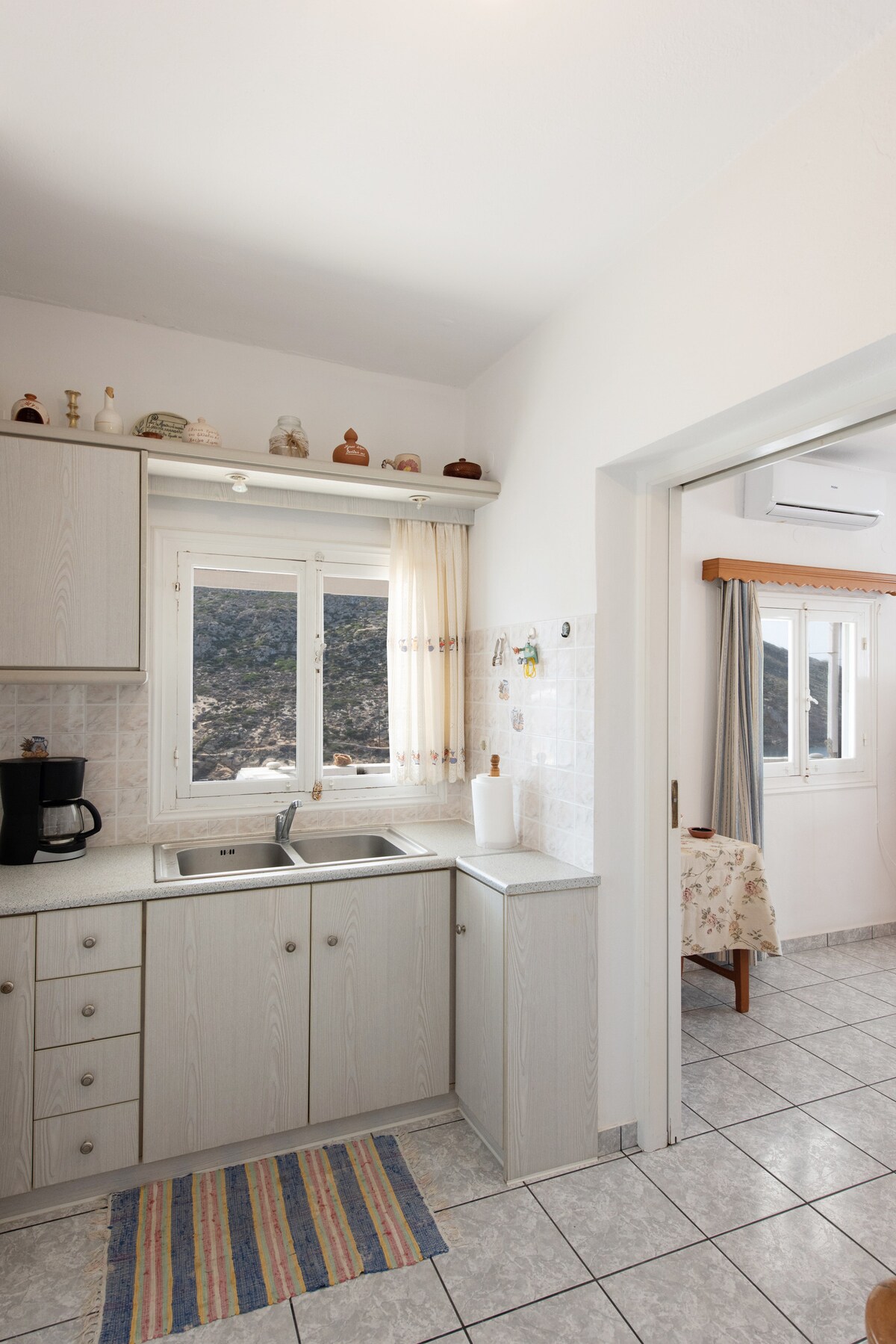 Casa tradicional de la isla en la playa. Situada en un complejo, en la tranquila playa de Karavi, a poca distancia del puerto (13 minutos a pie). La casa tiene 90 metros cuadrados, está totalmente equipada y se divide en dos niveles. En la planta baja se encuentran los dos dormitorios, el salón y los dos baños. En el nivel superior se encuentra la cocina y el salón en un espacio abierto. La zona exterior consta de dos terrazas. Hay aparcamiento privado junto a la casa solo para los residentes del complejo.