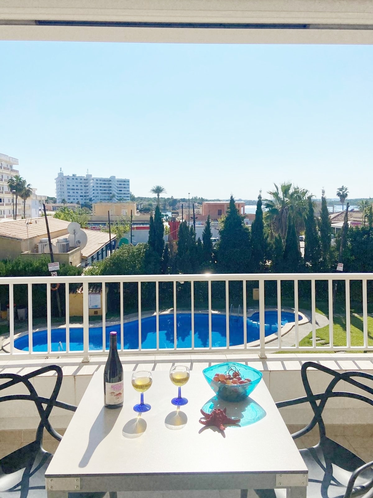 Bonito apartamento de 56 m2 a solo 300 metros de la playa con terraza de 10 m2, Reformado y moderno, cocina totalmente equipada. Aparcamiento propio. En Es Pinaret, zona muy tranquila, a 5 minutos paseando de la playa y del centro del pueblo. Muy cerca del supermercado que tiene abierto todos los días de la semana, de restaurantes y bares. Primer piso con escalera muy amplia, ideal para dos viajeros que quiera disfrutar de la playa, relax, ver naturaleza o hacer deporte por el norte de la isla