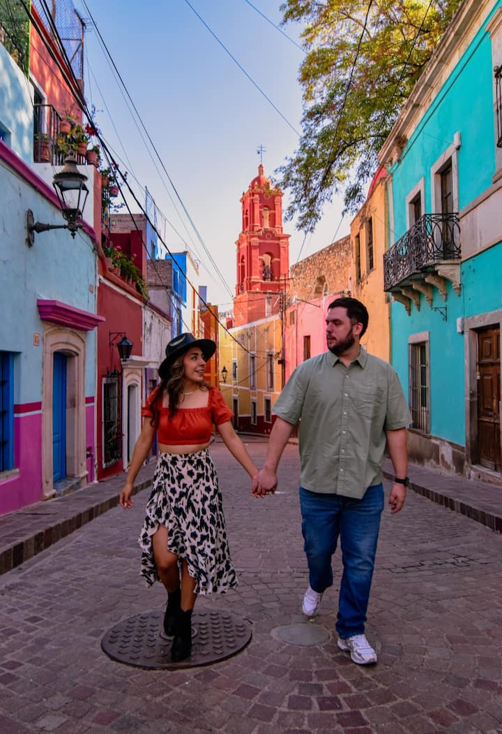 Daremos un recorrido por los puntos más importantes del centro mientras les voy tomando fotos en cada uno, guiandolos en sus poses y haciendo dinámicas divertidas