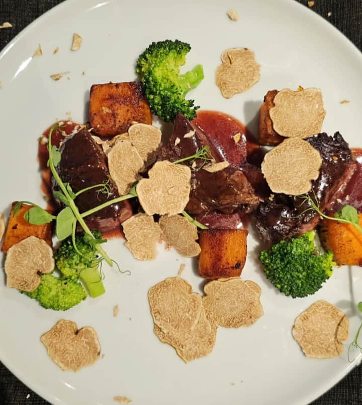 El precio de salida incluirá una comida de 4 platos, compuesta por un aperitivo, ensalada o sopa, plato principal y postre. Los precios varían en función del menú seleccionado y de los ingredientes prémium solicitados, y se puede ampliar a una comida de 6 platos si se solicita.