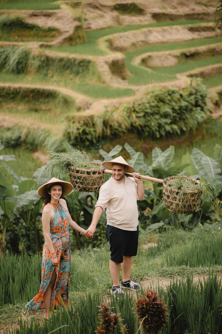 Esta sesión incluye la impresionante belleza de la terraza de arroz Tegalalang en el ambiente fresco de la mañana.