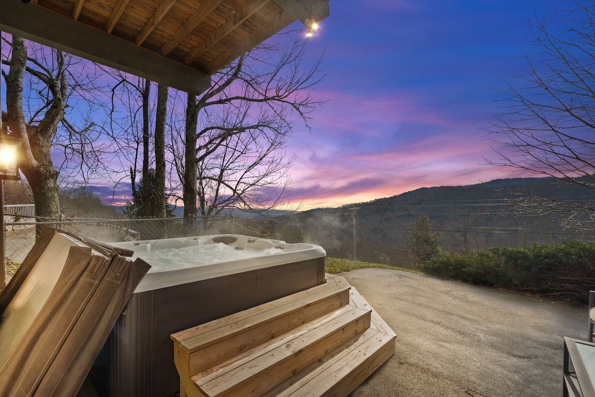 ¡Ven a quedarte en nuestro chalet de 5 ESTRELLAS! Un favorito para escapadas especiales y románticas. Nuestro romántico marco alpino está a 10 minutos del centro de Boone y a poca distancia en coche de Banner Elk. Con vistas panorámicas de Grandfather Mountain, ¡esta vista ha sido considerada una de las mejores de Boone! Esta moderna cabaña tiene una ducha envolvente, una fogata, una bañera de hidromasaje para 2 personas, vidrieras personalizadas y muchos toques personales para que se sienta como en casa. ¡Ven a quedarte en nuestro dulce hogar que está cerca de todo, pero se siente a millas de distancia!