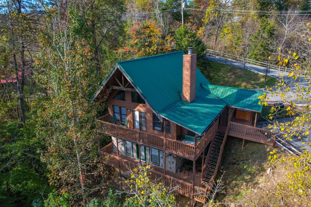 ¡Bienvenido a tu auténtica cabaña en Smokey Mountain! ⭐️ Fácil acceso. Máquina ⭐️ recreativa. A ⭐️ poca distancia en coche de las atracciones locales. Chimenea ⭐️ interior/fogata exterior ⭐️ Jacuzzi privado. Camas tamaño⭐️ king Planta ⭐️ superior Estacionamiento ⭐️ amplio. ⭐️ Cubierta exterior delantera/trasera Televisores ⭐️ inteligentes con soluciones de streaming en cada dormitorio y loft. Internet de⭐️ alta velocidad. ¡Zona de juegos para⭐️ niños! ¡⭐️ Cerca de Gatlinburg, Pigeon Forge, Dollywood, el Parque Nacional de las Montañas Humeantes, Pigeon Forge, Cades Cove, el Museo del Titanic, pesca y senderismo!