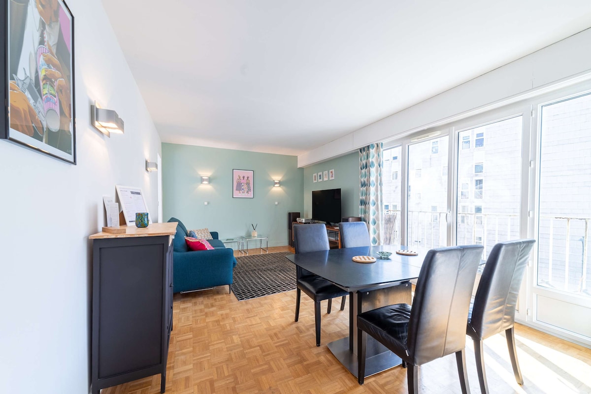 Apartamento de 65 m ² luminoso y espacioso con gran balcón. ¡Situado en el quinto piso con una vista despejada y sin vecinos ( vista de París)! Perfectamente situado entre París y Versalles. La sala de conciertos "La Scène Musicale " se encuentra a 15 minutos a pie. Nuestro apartamento está situado en el centro de la ciudad, cerca del transporte público (autobús, tren, metro), tiendas y restaurantes. Estacionamiento en el sótano. ¡Estaremos encantados de recibirle en nuestra casa!