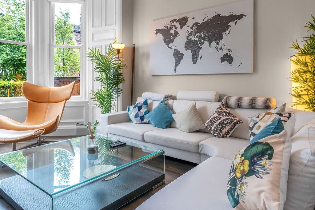 Este histórico apartamento de 2 dormitorios se encuentra a 15 minutos a pie del centro de la ciudad de Edimburgo a través del famoso parque Meadows. Una excelente base para explorar la ciudad. El espacio Un precioso apartamento de dos dormitorios con un enorme salón y cocina totalmente equipada. Acceso de huéspedes El departamento es tuyo para usarlo. El trastero del piso estará cerrado. Pero por lo demás, todo el apartamento está abierto para ti. Nota: no hay ascensor disponible y el departamento está disponible en el cuarto piso.