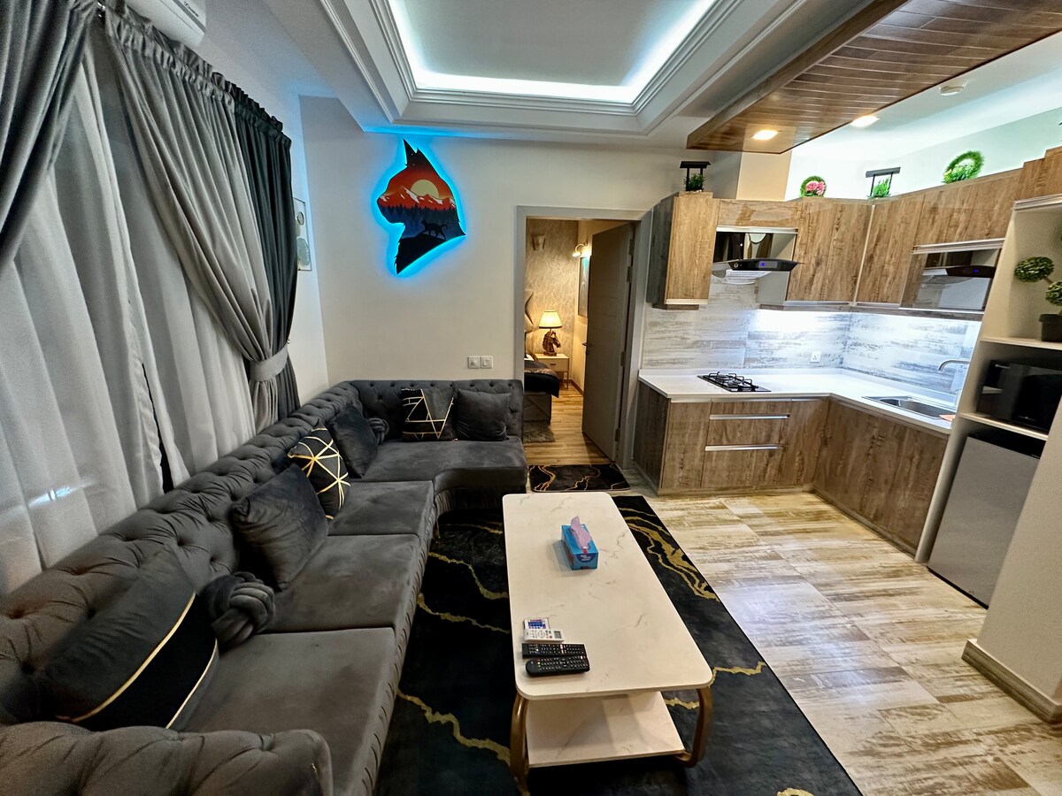 Royal Oasis - Premium Designer Suite with a Grand Scenic View of Talwaar Chowk – Bahria Town Lahore •Modern, cozy apartment with warm lighting and elegant décor •Free WiFi and Netflix access •Comfortable bed for a great night’s rest •Welcome basket with cookies, chips, tea and chilled water bottles •Walking distance from Jasmine Mall •Next to Gloria Jeans and Pizza Max for quick bites and coffee •Ludo and playing cards provided •Ideal for couples, families, solo travelers or business stays