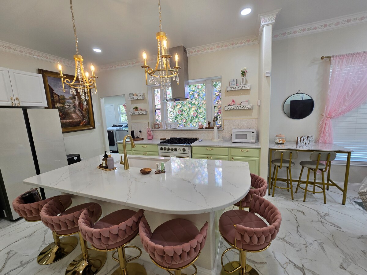 Llévate a tu familia y amigos y escápate a esta casa histórica digna de Instagram, a pocos pasos de la bulliciosa Main Street de Denison. Crea recuerdos inolvidables en esta casa de 1900 bellamente remodelada. Con 4 dormitorios (con televisores), 3 baños completos y un escondite en el ático, hay mucho espacio para relajarse, reír y crear recuerdos. El balcón Juliette añade encanto y romanticismo. Estacione 6 vehículos en la amplia entrada. Camina hasta el brunch, compra en las boutiques, visita bodegas, todo a pocas cuadras de tu hogar lejos de casa.
