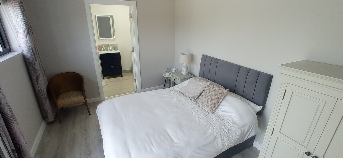 ¡Saludos desde las colinas de Sligo! Nuestra propiedad es un espacioso y moderno apartamento tipo estudio en el primer piso adyacente a nuestra casa familiar. Está totalmente amueblado con un alto nivel de comodidad. Luminoso y espacioso, con una hermosa vista sobre el bosque de madera dura maduro, está ubicado en una granja de ovejas en funcionamiento. Se encuentra a 10 minutos en coche de la ciudad de Sligo, a 3 minutos del Castledargan Hotel and Golf Course y a 5 minutos del Castillo de Markree, con fácil acceso a paseos por tierras altas y bosques, y playas de renombre mundial.