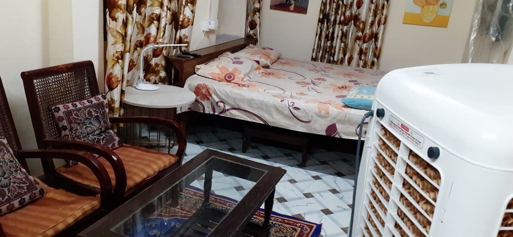 🌸 Spiritual & Peaceful Retreat • Calm, thoughtfully designed 1BHK in Varanasi's most sacred zone • Private bedroom, bathroom & dedicated study/work area • Kitchenette with induction & essential cooking utensils • Bright interiors in green, blue, yellow & off-white for peaceful energy • 350 m walk to Kashi Vishwanath Temple • 1 km to Dashashwamedh Ghat & Ganga Aarti • Steps from Ram Bhandar, Antient Gopal Mandir & Kal Bhairav • Lift access, 2nd-floor apartment in a very prime location