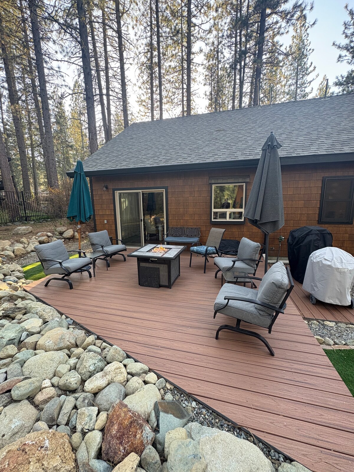Bring the whole family to this great place with lots of room for fun. Relax, explore, golf & reconnect. The backyard is a dream featuring 1,700 sq. ft. of spacious decking, a BBQ, cozy fireplace, and comfy outdoor seating for those unforgettable mountain evenings. With 4 acres of beautiful forest backing the property, you'll enjoy stunning views, tons of privacy, and a true feeling of escape. Whether you're grilling with friends or stargazing under the pines, this outdoor space is pure magic.