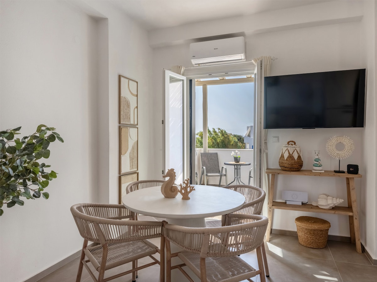 En medio de un pintoresco olivar, la residencia Eleonas 1 te permite sumergirte en la mejor experiencia de alojamiento rodeada de la felicidad de la naturaleza. La residencia se extiende sobre 65 metros cuadrados y cuenta con 2 dormitorios y 2 baños, junto con una cocina americana. La encantadora terraza y la piscina compartida del complejo Eleonas complementan tu estancia, invitándote a relajarte en un entorno idílico a pocos minutos a pie de la playa.