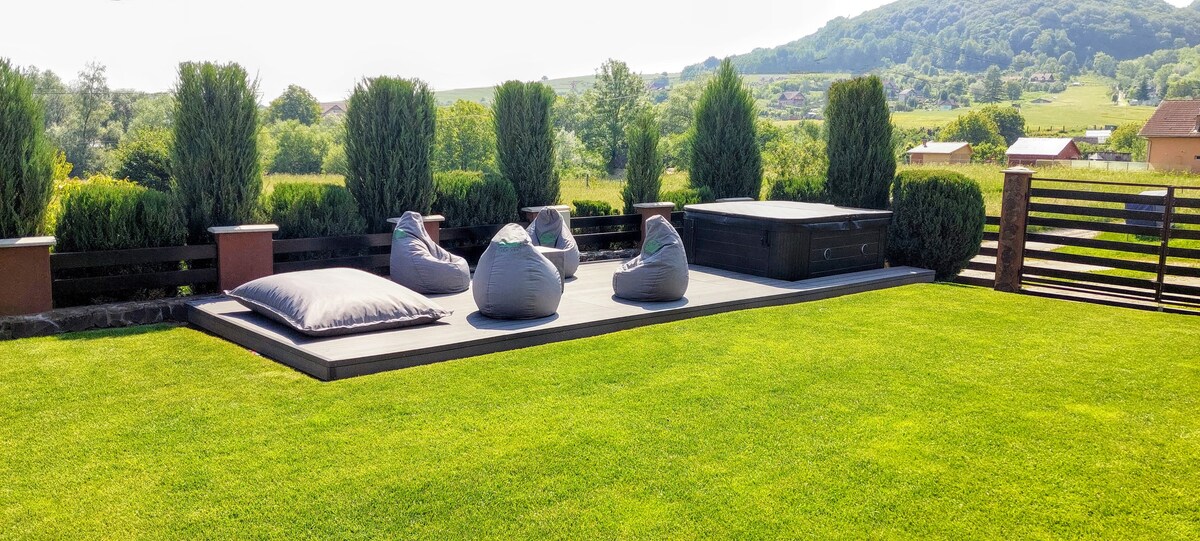 Ungefug A Frame Sighisoara, una casa de campo A Frame ubicada en Sighisoara. Se puede acceder fácilmente a la ubicación en coche, pero hay un tramo de unos 200 metros de carretera sin pavimentar. En el jardín de la propiedad, encontrarás un área especialmente diseñada para relajarte ¡Atención! El calentamiento del agua de la bañera se encargará de usted. Te prepararemos agua limpia y proporcionaremos leña para calentar el agua.