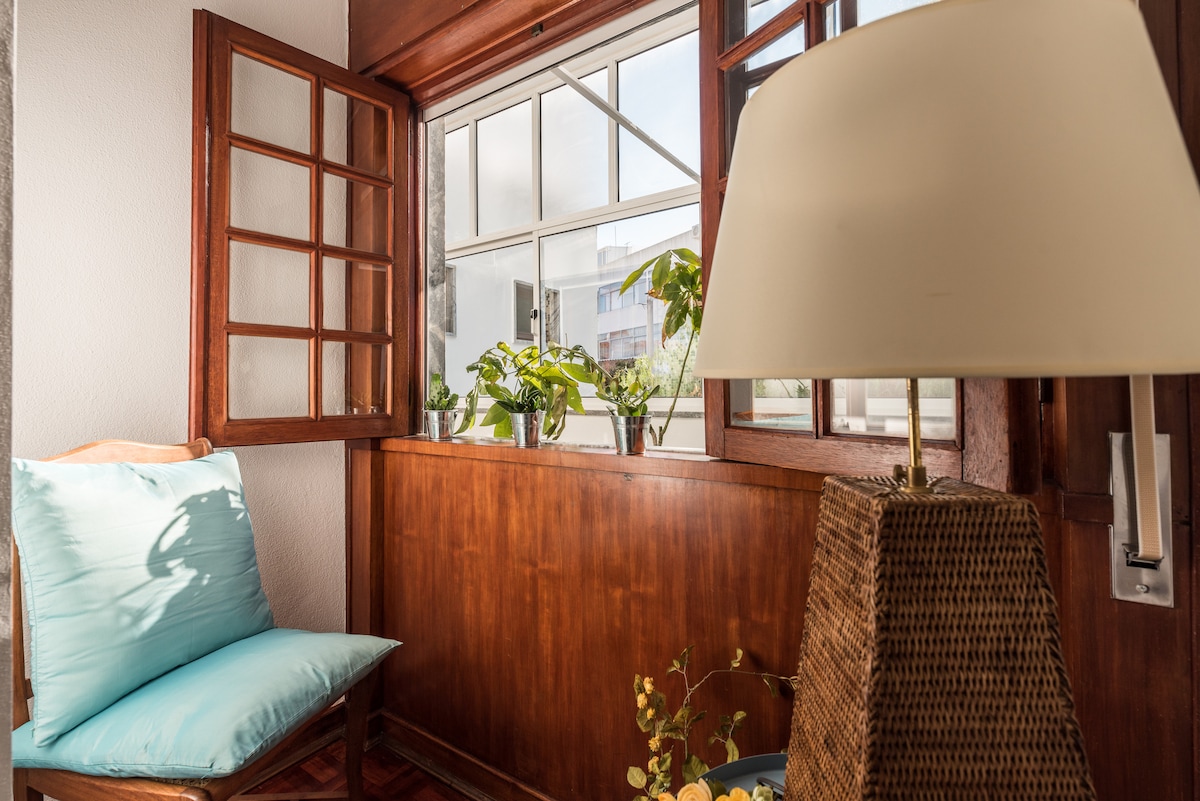 Beautiful, top floor, Lagos apartment with easy access to a shared rooftop terrace with stunning sea views and private balcony overlooking the historical centre and Monchique mountain. Central, yet peaceful, 15 min walk to beaches. Relax in modern, elegant interiors with an eco-conscious luxury touch—your ultimate Algarve retreat. Rated 5 stars by 600+ guests, ideal for solo travellers or couples seeking a luxury retreat in central Lagos.