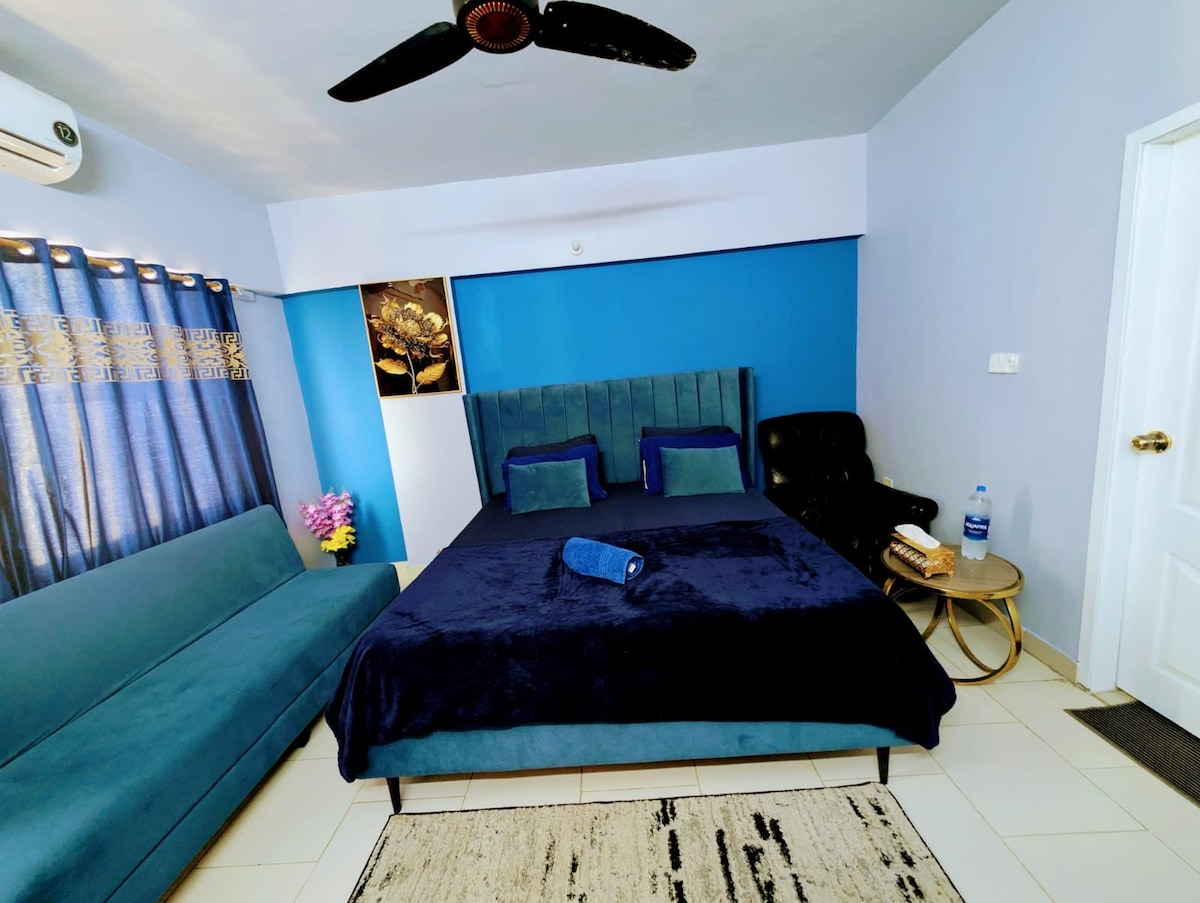 No dudes en reservar o enviarme un mensaje primero. Estaremos encantados de aclarar cualquier duda específica con anticipación al +92 344 481 triple 5 8. Es un apartamento amueblado en la planta baja de 1 dormitorio con pequeña sala de estar y cocina con entrada independiente desde la calle en Clifton Area, que es el centro de la ciudad cerca de famosos centros comerciales como The Forum, Ocean Tower. El apartamento tiene su propia nevera, TV. Plancha. Sofá de 3 plazas, pequeña mesa de comedor y pequeña cocina con todos los utensilios necesarios.