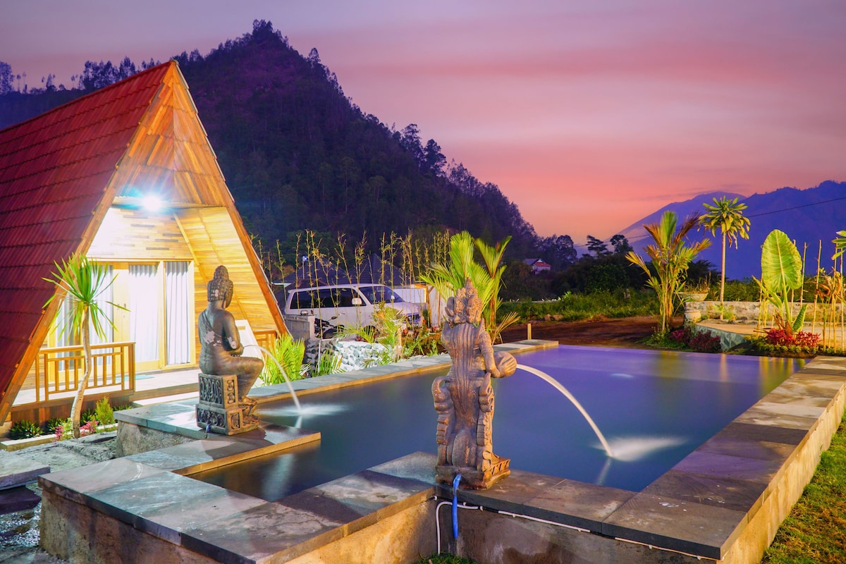 5 cabañas con vistas al lago y piscina compartida: Kintamani