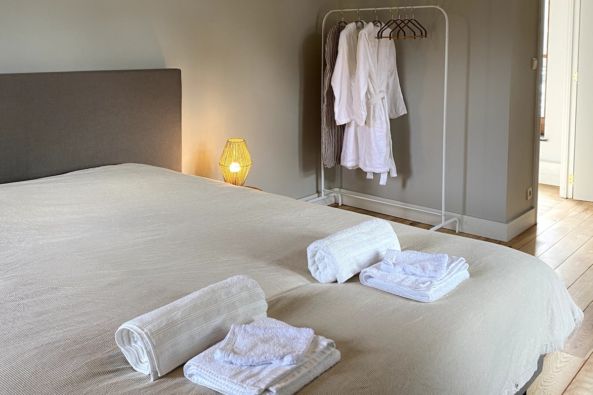 Amplio apartamento en la azotea con vistas al Grote Markt. Departamento moderno, 150 m2. - WIFI rápido disponible. Salón con vistas al Grote Markt, mesa de comedor con 6 sillas, cocina equipada, pasillo con pequeña terraza, 2 dormitorios dobles (uno con vistas a la Torre de la Abadía) y baño con ducha italiana. Hay una cuna y una almohada de cuidado disponibles para bebés. Cocina: lavavajillas, horno, microondas, hervidor de agua... Baño: inodoro, lavabo, ducha a ras de suelo, lavadora y secadora. Edificio de entrada: 5 escaleras