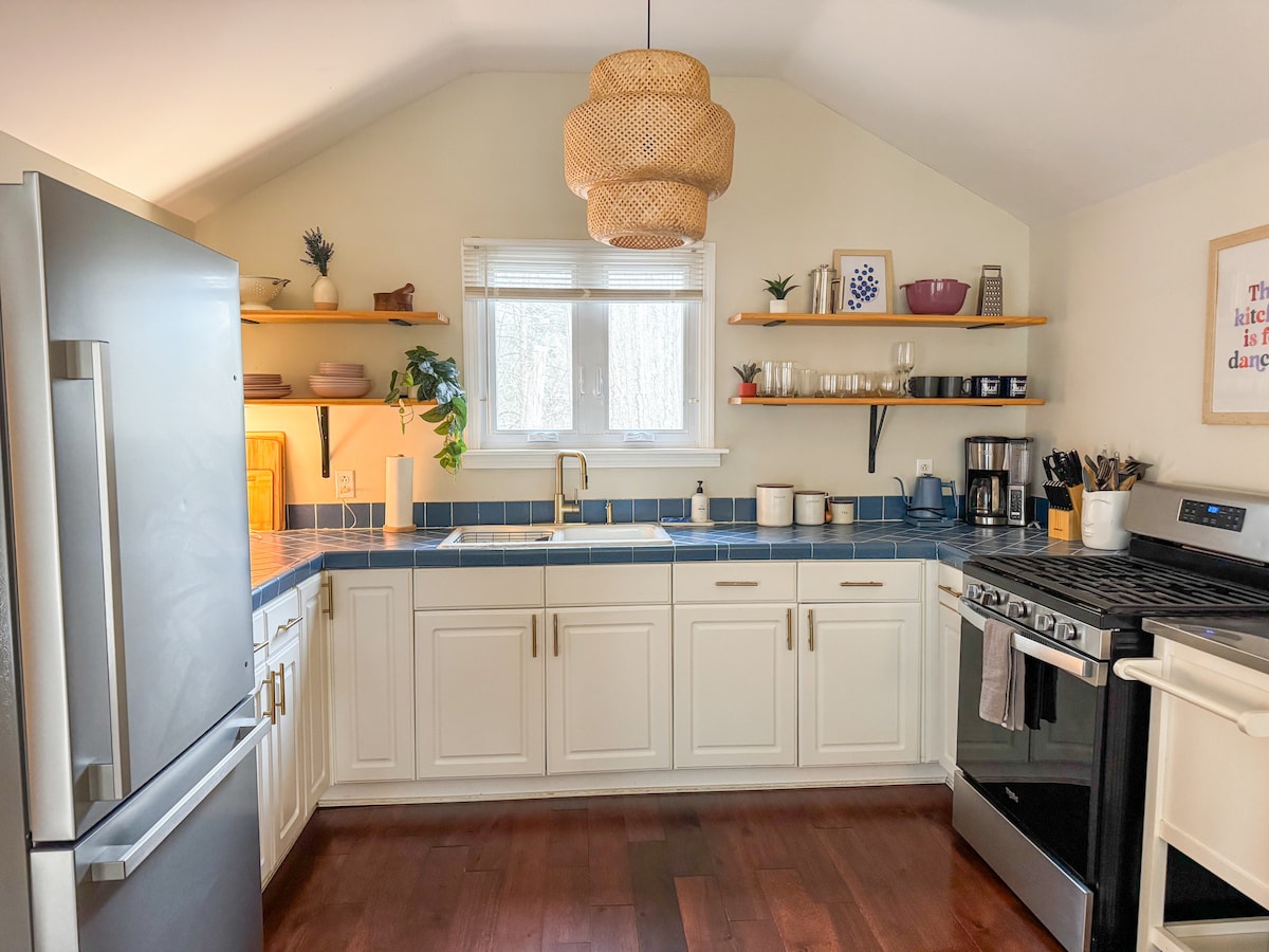 Encaramado sobre un arroyo en el bosque. Observa cómo las estaciones se pliegan y se desarrollan en 50 acres de bosque privado, cascadas y estanque. Duerme con los sonidos del arroyo de abajo. Despiértate con un dosel de vigas, sol moteado, desayuno en un porche con mosquiteros. Respeto, creatividad y juego (caminata, trineo, a 5 minutos de Mohawk Mtn Skiing). Construido a mano, inspirado en casas de té japonesas, con construcción de lengua y surcos, puertas de pantalla shoji y alfombrillas de tatami. Video: “Cornwall Hollow Teahouse” en YT o IG