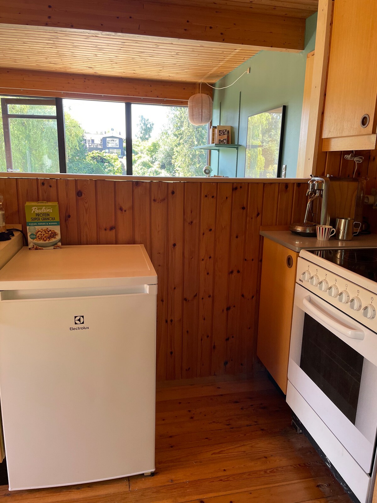 🏡 Acogedora casa de madera con encanto 🌊 A solo unos minutos a pie del agua con un encantador embarcadero de baño 🌞 Gran terraza orientada al oeste con sol todo el día y puesta de sol 🍽️ Deliciosas comodidades para cenar al aire libre y disfrutar de la comodidad 📚 Ideal para relajarse y leer al sol 🔥 Fogata para noches acogedoras bajo las estrellas Zona de cabañas🌲 tranquila y acogedora Smart TV de📺 43 pulgadas 🍳 Cocina acogedora con cafetera, microondas, cocina eléctrica, tostadora, etc. Hay 🛏️ toallas y ropa de cama disponibles en la casa