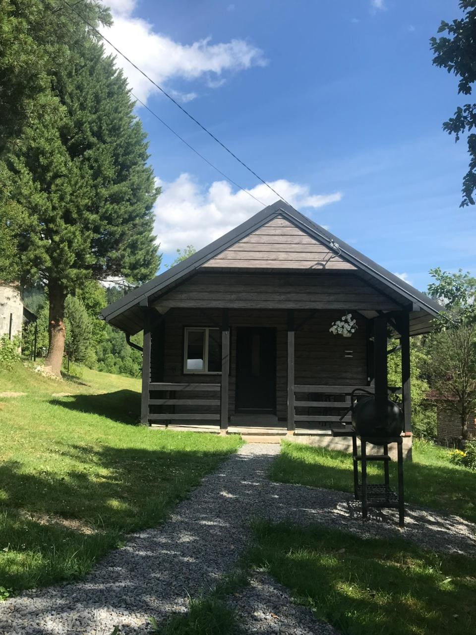 Nueva casa de campo espaciosa para 2–4 personas, ¡sin vecinos! • Dormitorio separado con cama doble y sofá cama en la cocina del estudio. Cocina totalmente equipada, zona de estar, baño. • Wifi, aire acondicionado, TV, calefacción, suelo radiante, suministro eléctrico ininterrumpido. 🌞 Territorio con increíbles vistas a la montaña • Zona de fogata, hamaca, columpio, parrilla y zona de barbacoa • Aparcamiento en el territorio •