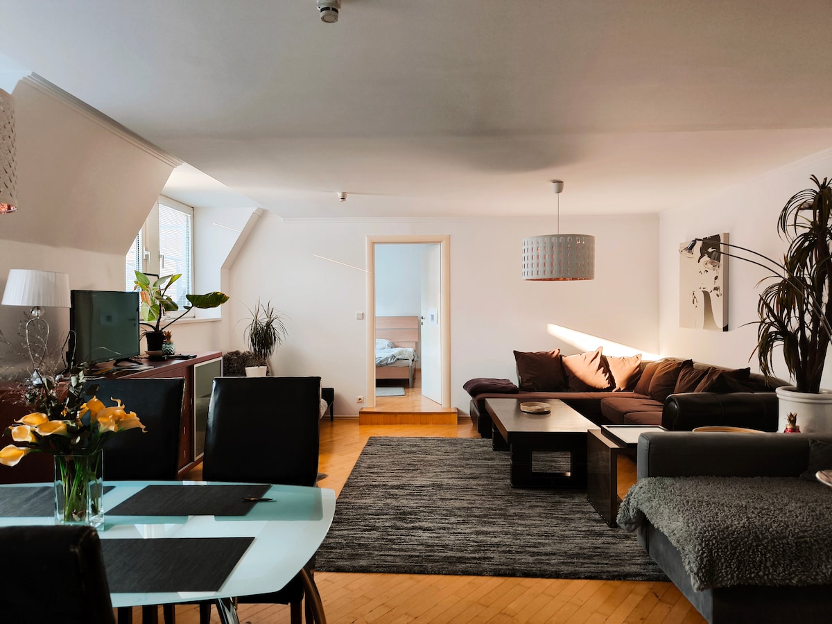 Bienvenido a nuestro cómodo y tranquilo apartamento de 68 metros cuadrados con 2 amplios dormitorios y 1 salón conectado con cocina y comedor. Se encuentra en el centro de Bratislava, a solo 5 minutos a pie del río Danubio y del centro histórico peatonal de la ciudad, con muchos restaurantes, cafeterías, monumentos históricos, plazas y centros comerciales. Descuentos para estancias largas: • 5 % a partir de 4 noches • 10 % a partir de 7 noches • 15 % a partir de 2 semanas