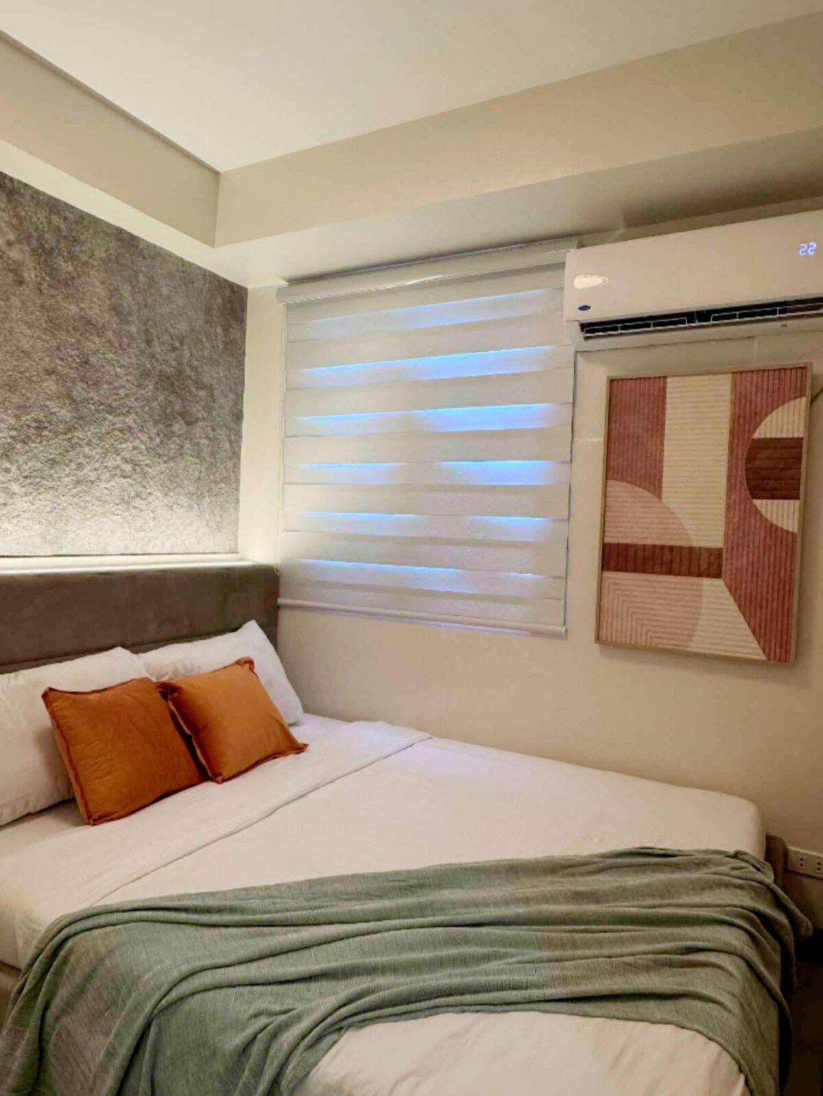 Este lugar minimalista y relajante se encuentra en el centro de la ciudad de Iloilo y cerca de centros comerciales y destinos imprescindibles (Casa Emperador, iglesia y plaza de Molo). Esta habitación tiene una cama tamaño queen y ofrece servicios similares a los de un hotel, como TV Sony de 55 pulgadas, wifi gratuito con velocidad de internet rápida, nevera, aire acondicionado, hervidor eléctrico, bidé con función de lavado femenino y trasero, calentador de agua (ducha caliente), arrocera, estufa de inducción y utensilios de cocina. También hay piscina (2 personas) y gimnasio disponibles.