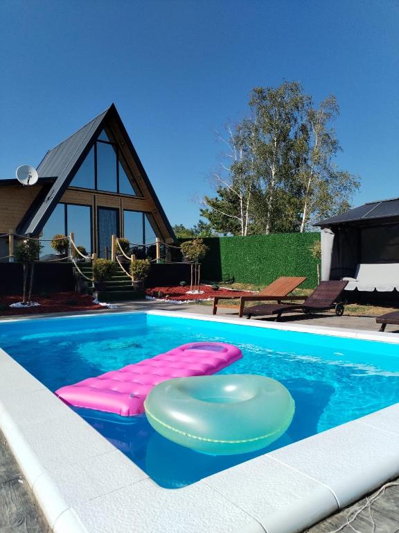 This unforgettable accommodation is anything but ordinary. Its lively interior is a mix of rustic and modern, creating a unique atmosphere. Brand new house is located 40 km from Belgrade in a weekend village called Jugovo, near Aqua park Jugovo (200m). You will enjoy privacy, with private parking, large yard, grill place, terrace on the tree with a view of the Danube, kids place.