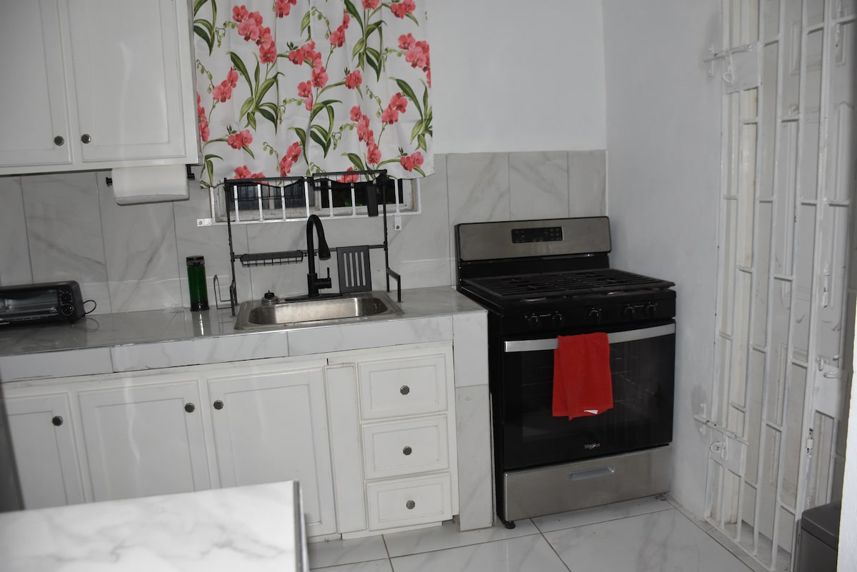 Disfruta de una experiencia elegante en este exquisito apartamento céntrico. Ofrece relajación y comodidad. Ubicado en la parroquia más hermosa y tranquila de Jamaica. Perfectamente ubicado a 5 minutos de Port Antonio Town. Tiene una ubicación ideal, muy cerca de restaurantes, supermercados y playas de arena blanca, con una variedad de actividades para disfrutar. Tranquilo en coche corto y pintoresco a atracciones como Somerset Falls, Nanny Falls, Frenchman 's Cove, Blue Lagoon y Boston jerk Centre.