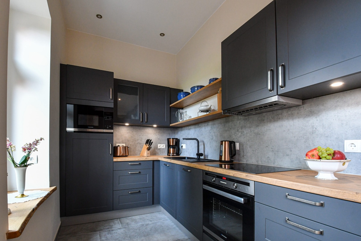 Liebevoll eingerichtete Ferienwohnung (Obergeschoss) mit zwei Schlafzimmern für bis zu 4 Gäste. Zusätzlich gibt es einen separaten Bereich mit Sitzmöglichkeiten (inkl. Grill) im Grünen. Ideal zum Abschalten und sich vom Alltag zu erholen. Die naturnahe Umgebung lädt zum Wandern, Radfahren oder Reiten ein. Der Eleonorenwald ist direkt in der Nähe.Auch Haustiere sind in Absprache erlaubt. Für Reiter besteht außerdem die Möglichkeit bis zu 2 eigene Pferde unterzubringen. Boxen sind vorhanden.