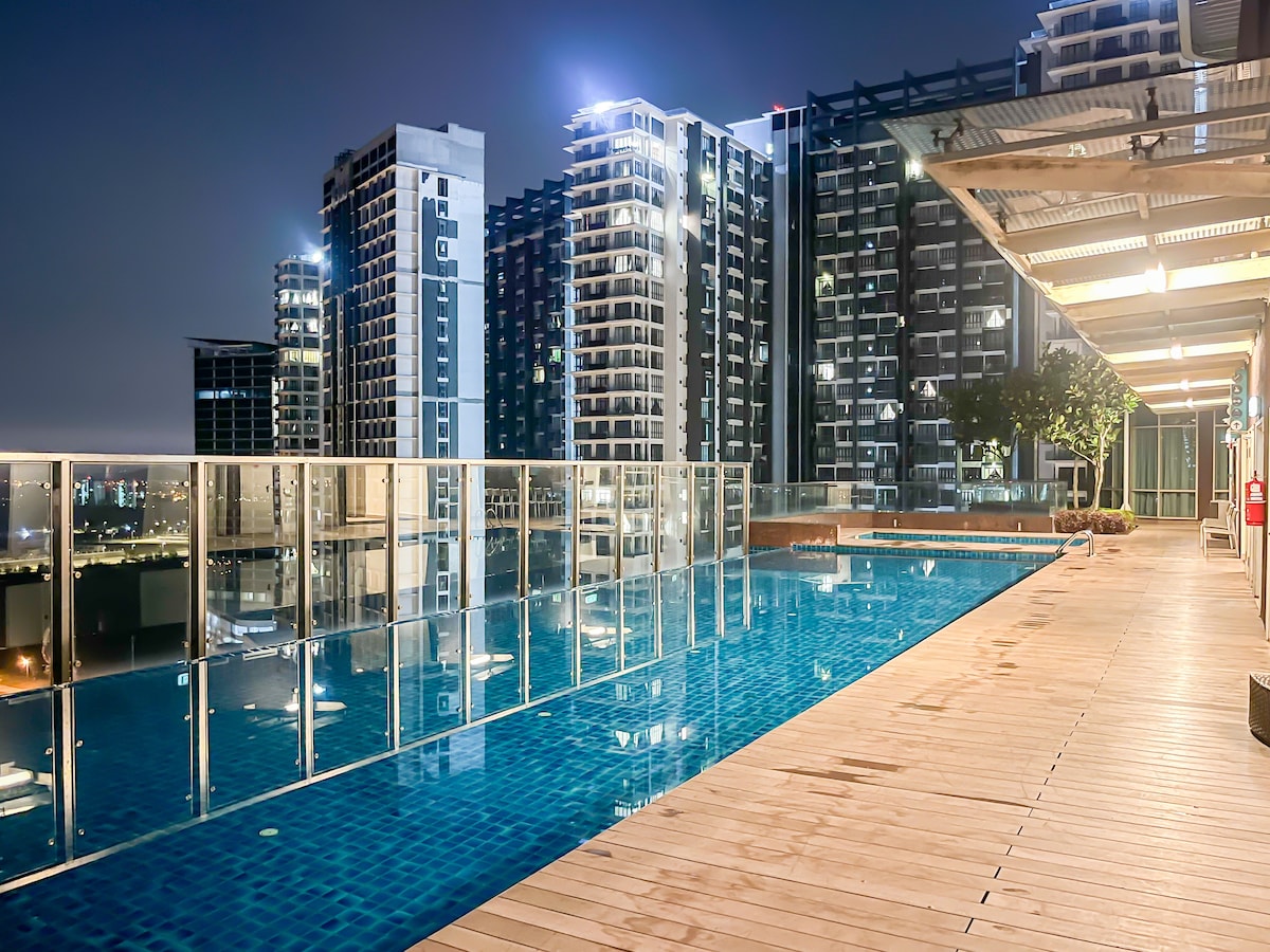 ¡Lujosa y espaciosa unidad de 3 dormitorios con bañera! ¡Camas tamaño king y queen de primera calidad que garantizan un buen sueño aquí con increíbles vistas al centro comercial Midvalley Southkey! ¡Lo más destacado! - Bañera privada - TV inteligente de 65 pulgadas con aplicaciones de YouTube y Netflix. - Mesa de piscina - Consola de juegos de retro - Dispensador de agua potable Rodeado de centro comercial y gran variedad de sabrosas comidas locales - A 2 minutos en coche de Midvalley Southkey JB - A 5 minutos del centro comercial KSL City Mall. - A 8 minutos del centro comercial City Square y Custom JB.