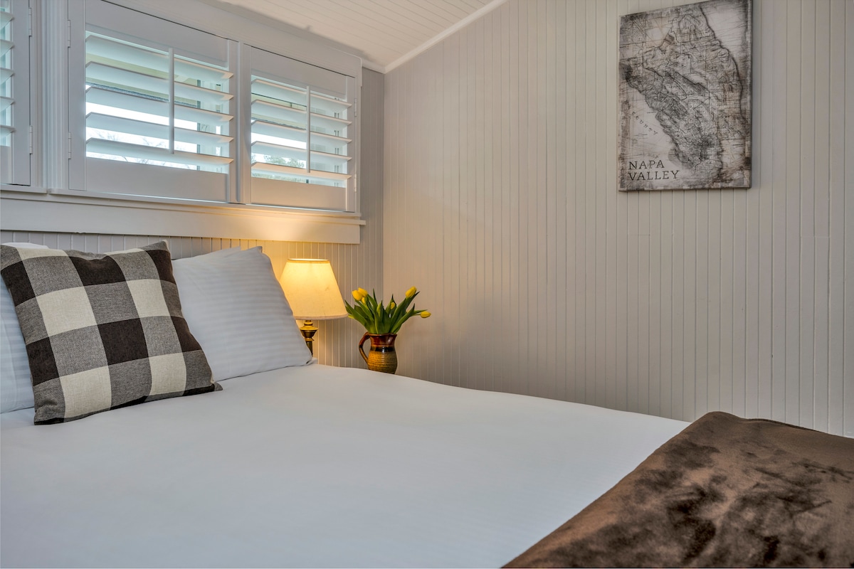 Ubicación: a solo 2 millas del centro de St. Helena y a 1 milla de la CIA, Krug y el Hospital St. Helena. Alojamiento: habitaciones privadas, cada una con una cama California King, baño privado y patio cerrado. Servicios: acceso completo a la villa y a la cocina para huéspedes. Opciones de la habitación: el Inn tiene 6 habitaciones en total. Puedes alquilar desde 1 hasta las 6 habitaciones. (El precio indicado es por habitación). Impuesto : se aplica un impuesto sobre la habitación del 15% a la llegada.