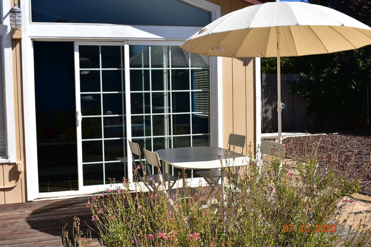 Bienvenido a tu santuario del condado de Sonoma. Esta es una casa de 4 dormitorios/2 baños con un entorno abierto y espacioso. Además de una sala de estar, hay una gran guarida que conduce al patio trasero para que tu familia disfrute. Esta casa ofrece un amplio espacio para reuniones familiares y/o retiros (NO FIESTAS). La cocina está equipada con utensilios de cocina y aperitivos para que los disfrutes. Hemos instalado una cámara con timbre en la puerta principal, una cámara con parpadeo en la entrada, en el lateral de la casa y en el patio trasero. Tu estancia también incluye una botella de vino.