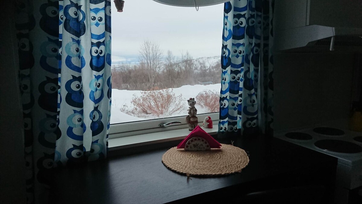 leilighet til leie, 2 soverom, balkong,det meste av fasiliteter og nært til både by, dagligvarebutikker, snøhotellet og friluftsaktiviteter. Gratis parkering. Buss stopp rett over veien, om du vil til byen eller flyplassen. Ser ofte nordlys fra balkongen. Håper dere vil trives her.Send melding om dere lurer på noe. Inn og utsjekking kan være fleksibelt. Soverom 2 har 120 cm seng, så leiligheten passer best for 3 voksne, eller 2 voksne og 2 barn. Kan også ordne 1 ex seng/ madrass.😊Velkommen😊
