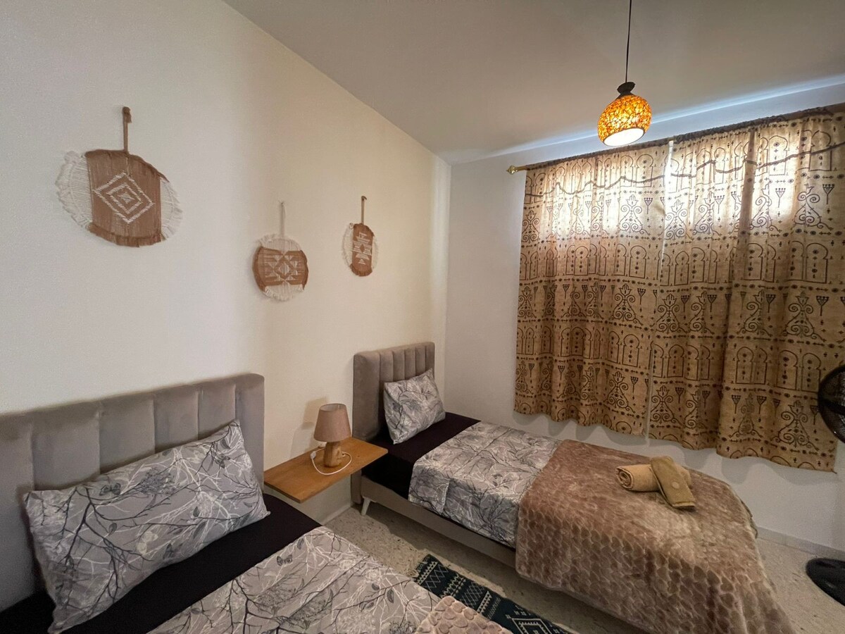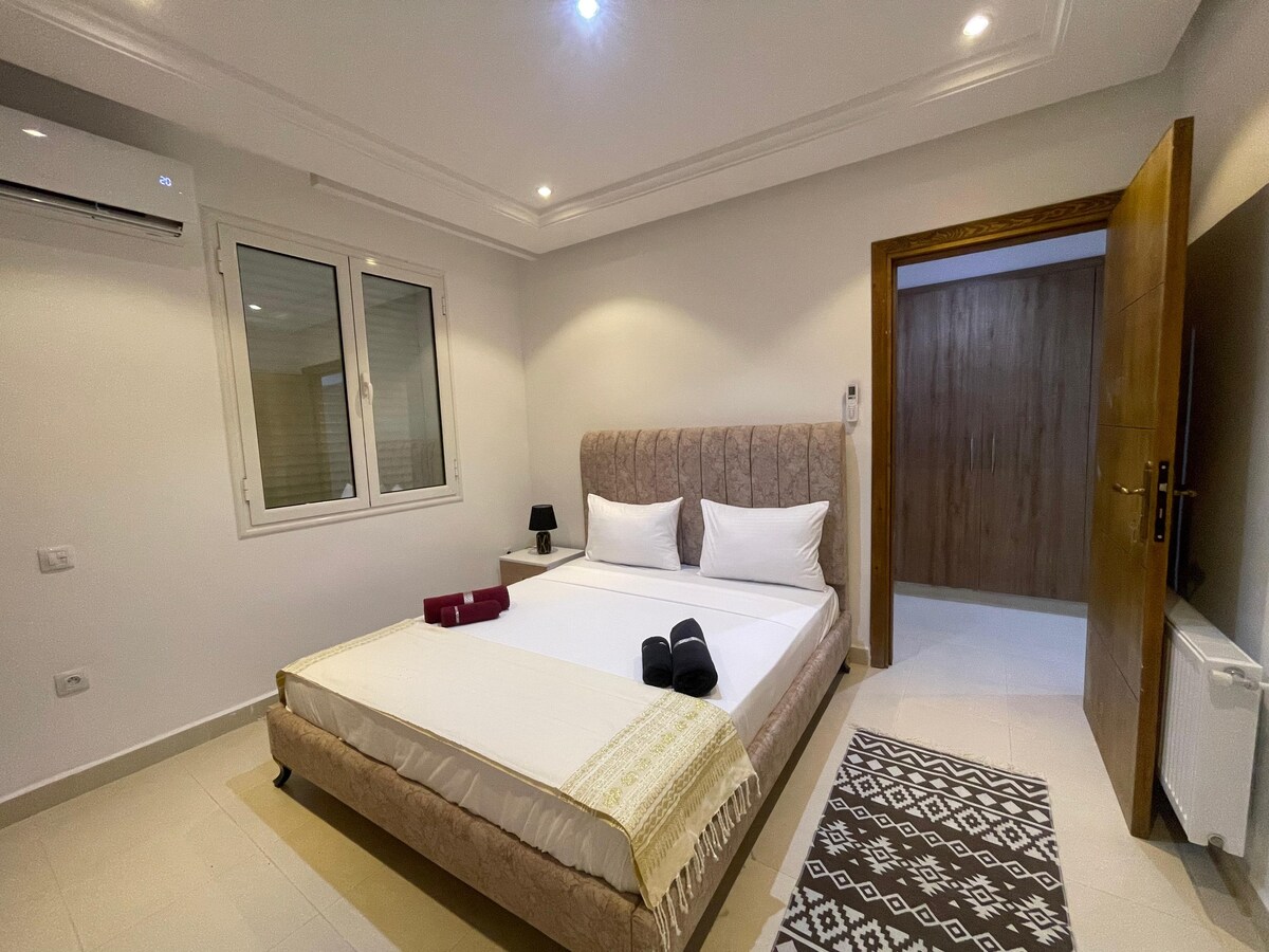 Bienvenido a nuestro acogedor y elegante apartamento de dos dormitorios de nueva construcción, a pocos pasos del mar. 🌊 Aquí puedes relajarte y disfrutar de unas vacaciones o una aventura sin estrés en el corazón de Susa. Cerca de todo tipo de atracciones: el zoco de Medina, Bab Bhar, la Corniche, el castillo, el puerto, la vida nocturna, restaurantes y bares, supermercados y mucho más por descubrir. Ven a obtener tu dosis de Vitamin Sea, la escapada perfecta de la rutina diaria. Todo lo que tienes que hacer es disfrutar mientras nosotros nos encargamos del resto.
