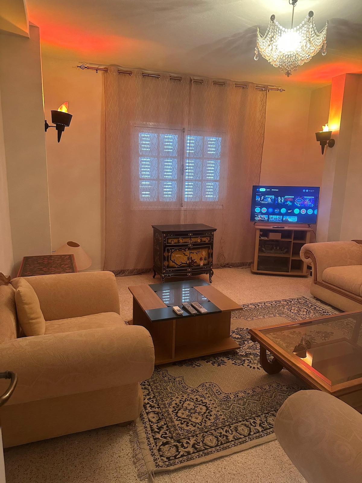 Al parecer nuevo a 200 metros de la playa en un edificio de alto standing, un apartamento ofrece un confort de alta gama…tiene una sala de estar con sofá doble Cocina bien equipada..baño con una amplia ducha italiana..una habitación con una cama king size…el apartamento tiene aire acondicionado y tiene calefacción central…un balcón con vistas al mar…y lejos de cualquier molestia. muy cerca de la playa..las discotecas.restaurantes y cafeterías. lo que le da un encanto sin igual