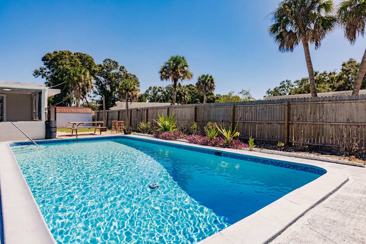 ¡Te damos la bienvenida a tu escapada de vacaciones perfecta en West Bradenton, Florida! Esta casa de 2 dormitorios y 2 baños bellamente renovada está diseñada para relajarse y entretenerse. Disfruta de los juegos de arcade clásicos, relájate junto a la acogedora fogata o reúnete para una barbacoa en el comedor al aire libre. La casa está completamente equipada con artículos básicos de playa, juegos de mesa, una trona y un Pack n' Play, por lo que es ideal para familias. Mantente conectado con wifi gratuito y aprovecha la lavadora y la secadora para mayor comodidad.