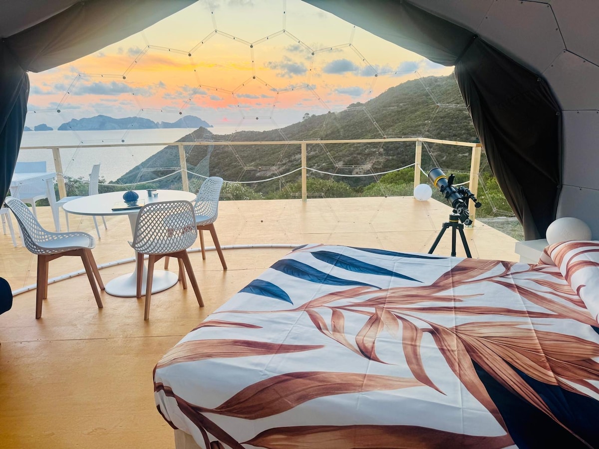 Habitación burbuja en Ponza con vistas a Palmarola: una experiencia única entre la naturaleza y el cielo. Inmerso en la vegetación, ofrece impresionantes puestas de sol y noches estrelladas para admirar con un telescopio. Duerme bajo las estrellas con total comodidad, rodeado por el silencio de la isla y la magia del cielo. Un pedacito de paraíso para soñar, relajarse y redescubrir la belleza del universo.