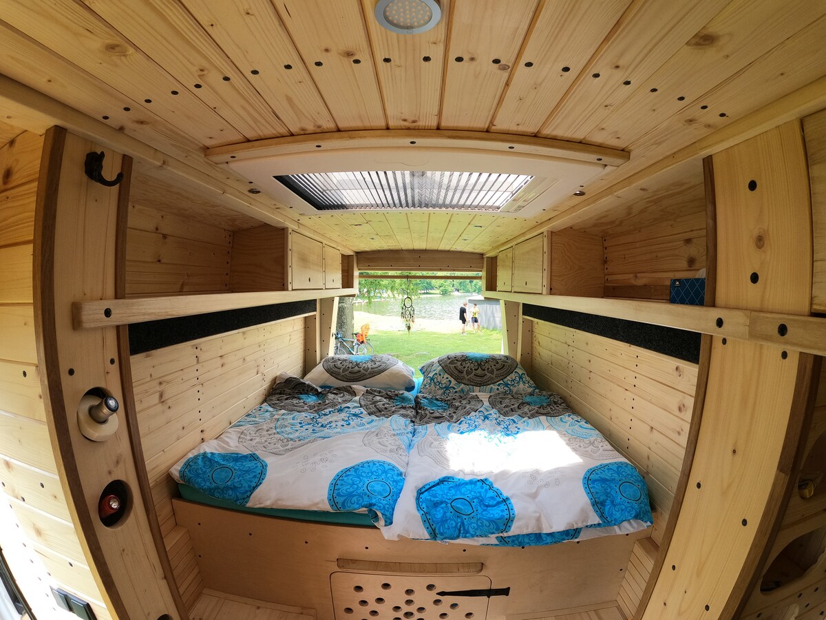 Una camioneta discreta con una acogedora pequeña habitación y una cocina en el interior. ¡Disfruta tu verano de libertad! - Calentador de control remoto - Paneles solares - Batería LiFePO4 280Ah - Convertidor de tensión - Refrigerador con control remoto con congelador - WC + ducha al aire libre - Bodega Se puede alquilar con tablas de paddle, kayak, parrilla, cine en casa...