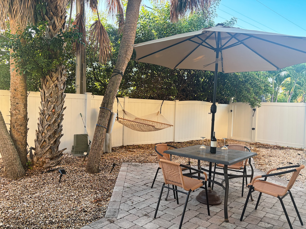 We're excited to be able to share our home again after the completion of our renovations following the Hurricane in 2024. This tastefully decorated ground floor 2BR/2BA condo has the largest, private patio —steps from the pool - and many extras (beach chairs, umbrella, and more) Walk to waterfront cafes, bars, and Sunset Beach (10 min) or a quick 5 min drive/Uber to top dining and nightlife. Military discounts w/ valid ID—message us to inquire.