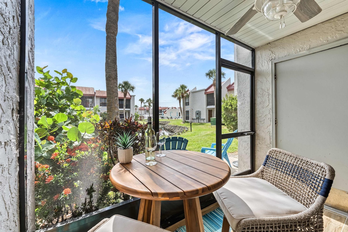 Una joya soleada y acogedora del centro vacacional: ¡patio privado, piscina, gimnasio!