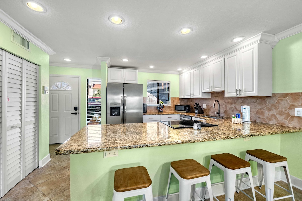 BNB Breeze presenta: Cobalt Cove. ¿Buscas el mejor retiro de bienestar en Sarasota? ¡No busques más! Escapada tropical diseñada para la relajación y la vida al aire libre en este exquisito patio trasero lleno de palmeras exuberantes y paisajismo sereno. Echa un vistazo a la extensa lista de servicios: • Piscina de agua salada climatizada: climatizada sin costo adicional del 21 de noviembre al 1 de abril • Sauna de barril - Frío de inmersión. • Jacuzzi Bullfrog • Cocina exterior y comedor cubierto • Cafetera Jura Espresso • Se admiten mascotas.