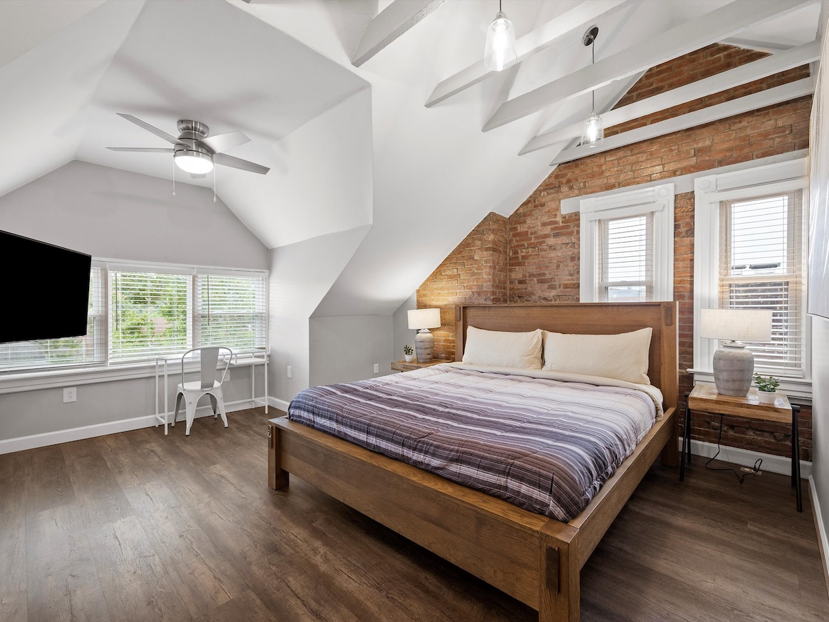 Con un ambiente acogedor de cabaña, ladrillo visto y toques de diseño, esta escapada romántica es perfecta para parejas o una estancia relajante. Escápate a un refugio rústico y moderno en el corazón de Lawrenceville, ¡a solo una cuadra de Butler Street! Relájate en el jacuzzi privado, acurrúcate en el sofá junto a la chimenea o explora los mejores restaurantes y vida nocturna de la ciudad a pocos pasos. Completamente remodelado en enero de 2025 con servicios de lujo: ¡reserva ahora para una estancia inolvidable!