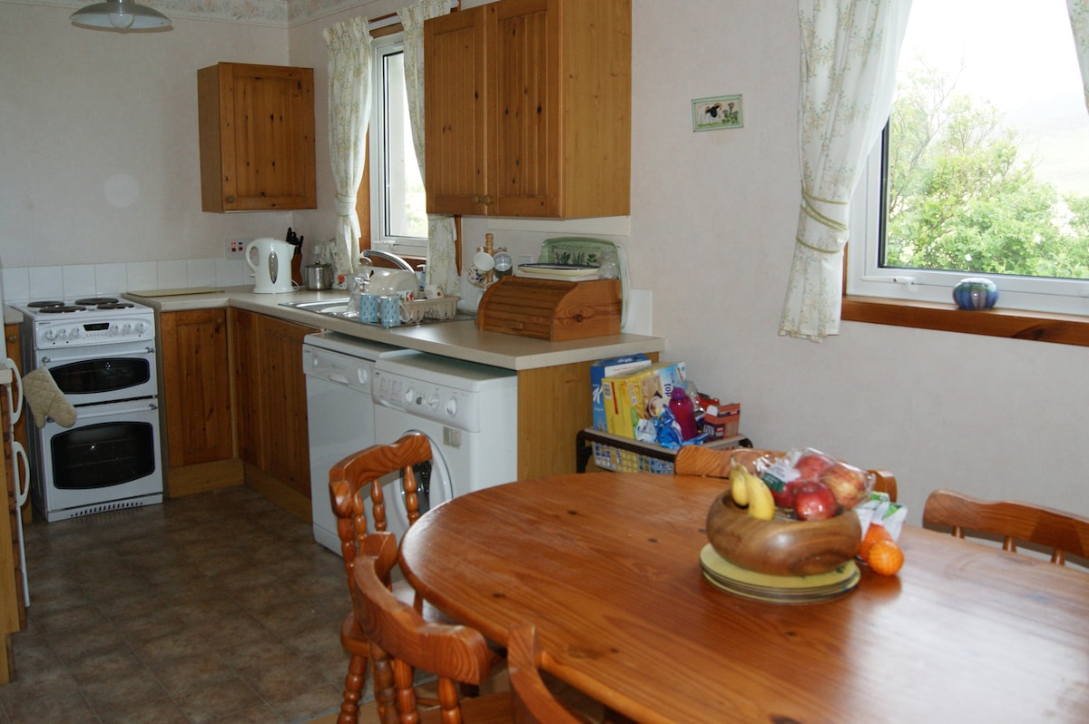 Este alojamiento único tiene personalidad propia. Recientemente renovado con un estándar muy alto, este chalet ofrece alojamiento de alta gama en uno de los pueblos más pintorescos, North Glendale en South Uist. Está a cincuenta metros del mar en la parte delantera del chalet, a 50 metros de un lago de agua dulce donde se puede pescar trucha marina para la cena. La vida silvestre es abundante, desde tu puerta podrás ver águilas reales, águilas marinas, aves rapaces y muchas más aves silvestres.