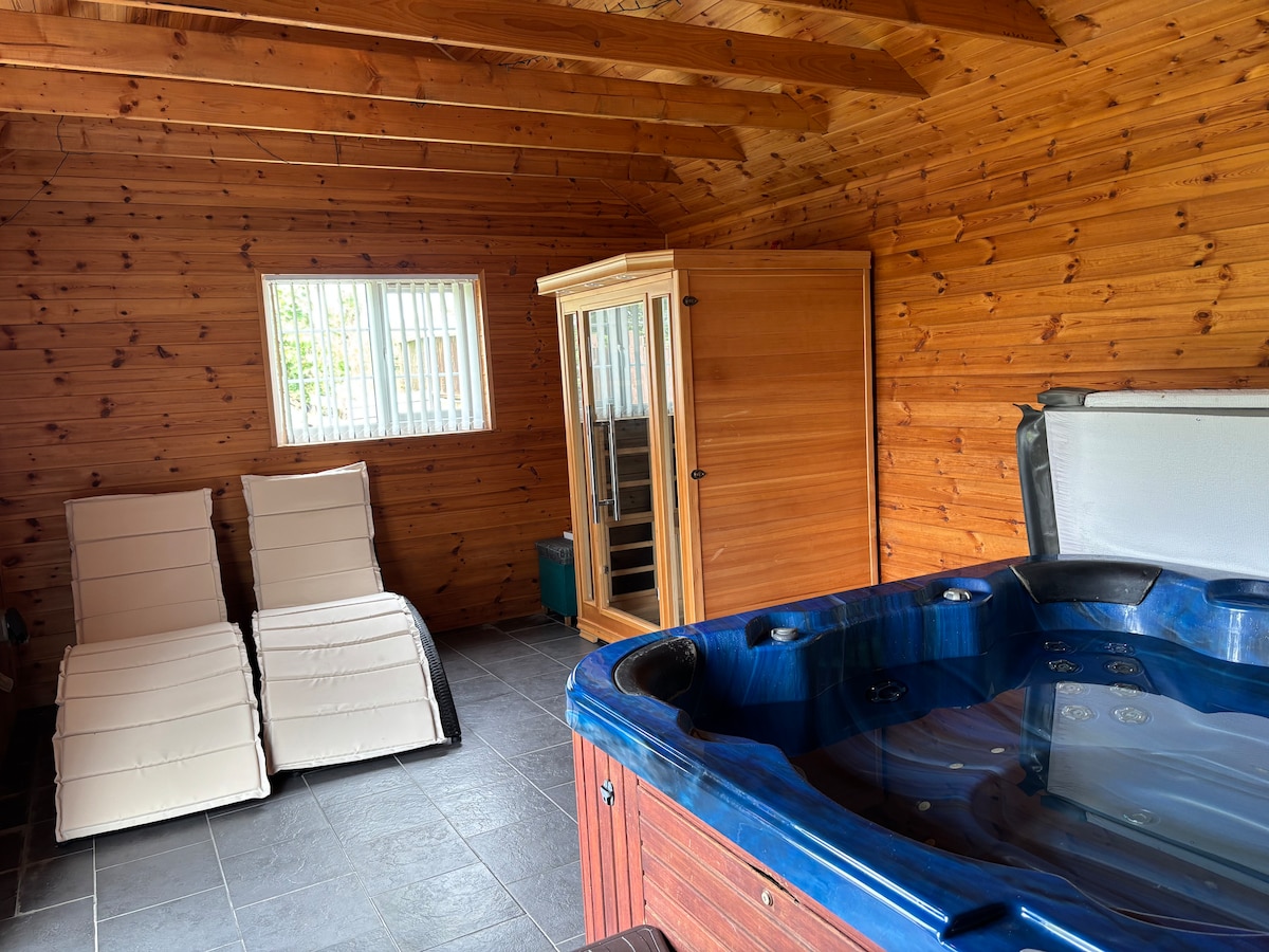 Tener su propia SAUNA DE INFRARROJOS LEJANOS de madera de cedro rojo Healthmate que evoca la esencia tranquila del bosque es la manera perfecta de relajarse, desintoxicarse y disfrutar de unas vacaciones perfectas y saludables, todos estos beneficios en la comodidad de la increíble CASA HIDEAWAY con chimenea y jacuzzi también. Increíbles paseos desde tu puerta. A 45 minutos de la ciudad costera más cercana. Mi casa es ideal para parejas, familias con niños y amigos peludos (mascotas), aventureros solitarios y grandes fiestas, que solo quieren reunirse, para esas ocasiones extra especiales.